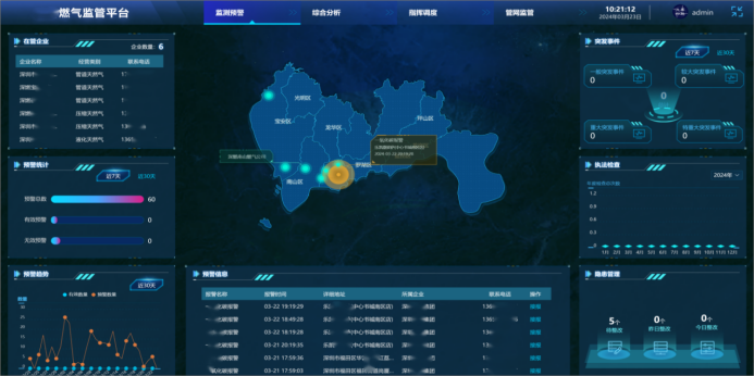 預警信息可分級展示、分層推送至政府監管部門、社區、燃氣企業、工商用戶和居民用戶。監管部門借助大數據分析算法,對監測預警數據進行綜合研判與指揮調度,助力科學決策和高效管理。